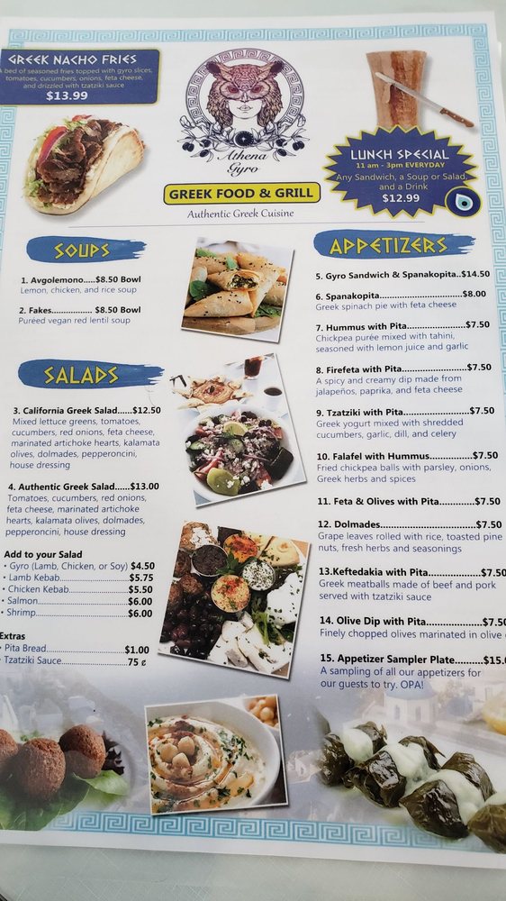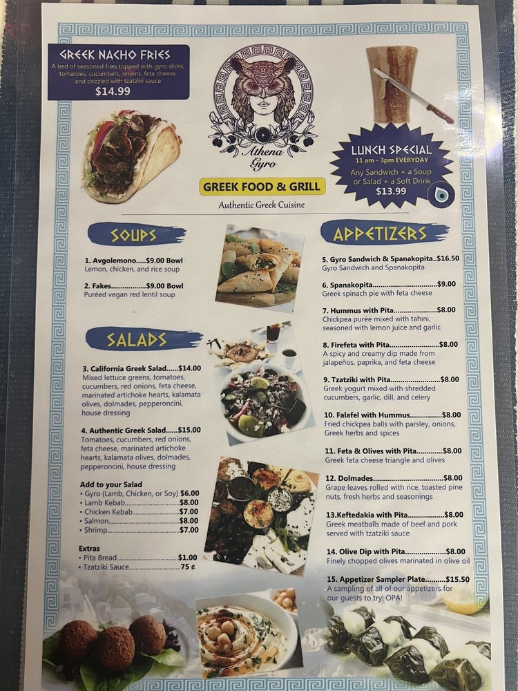 Introducing Athena Gyro, a Greek-Mediterranean sandwich haven located at 73121 Country Club Dr in Palm Desert, CA. This gem offers an array of delights, from vegan and vegetarian options to wheelchair accessibility and free Wi-Fi. The reviews speak volumes – customers rave about the warm pita, flavorful hummus, and generous gyro sandwiches that leave them coming back for more. Indulge in authentic Mediterranean fare, complemented by a selection of wines and delightful baklava for dessert. With attentive service and a welcoming ambiance reminiscent of a Greek getaway, Athena Gyro is a must-visit spot for a taste of the Mediterranean. Don't miss out on their fire feta and homemade lemonade to elevate your dining experience. Experience the best of Greek cuisine in Southern California at Athena Gyro.
